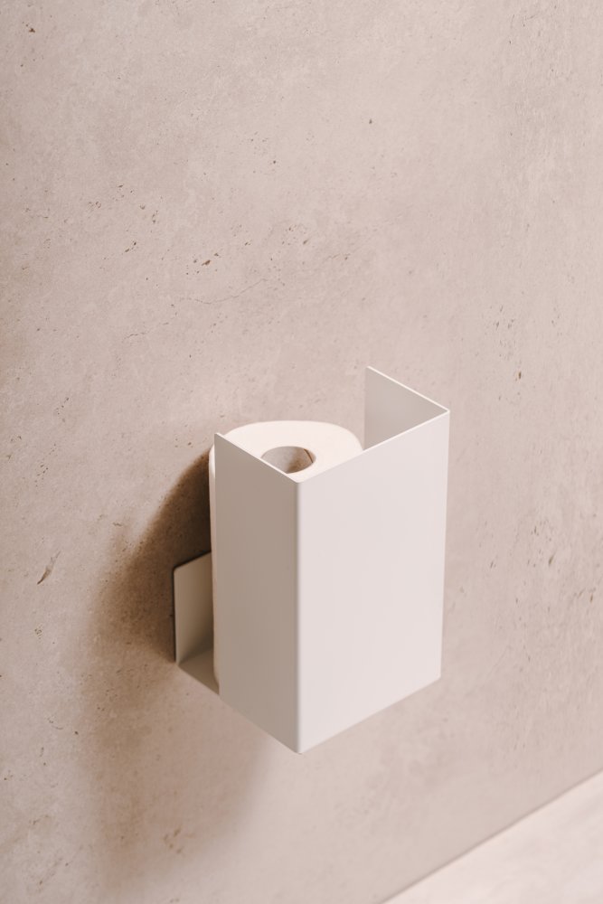 Jednoduché hrany a moderný design, ktorý sa hodí do štýlových a minimalistických kúpeľní. Držiak role papiera je možné namontovať zvisle alebo vodorovne. Verzia veľkosti „M“ ponúka priestor pre 2 rolky papiera a veľkosť „L“ pre 3-4 role. Kvalitné kovové telo je opatrené vodedolnou vypaľovacou farbou - životnosť produktu je tak veľmi dlhá. Súčasťou balenia je sada pri pripevnení k stene.