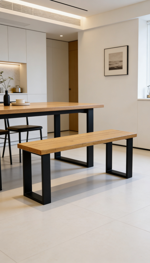 Lavica Agato je tvorená z masívnej dubovej dosky a oceľovej konštrukcie. Skvele sa hodí k jedálenským stolom, do predsiene, chodby alebo spálne. Lavica má minimalistický nadčasový dizajn. Dva oceľové profily pod doskou zaručujú maximálnu únosnosť a životnosť. Drevený masív z duba je ošetrený špičkovými voskovými olejmi, ktoré sú šetrné k životnému prostrediu, vysoko odolné a sú určené pre priamy styk s potravinami. Porvch kovu je opatrený matnou farbou s jemnou štruktúrou pomocou modernej technológie v práškovej lakovni. Produkt sa zasiela zložený a nevyžaduje ďalšiu montáž. Tvar podnožia dokážeme prispôsobiť dizajnu Vášho jedleného stola.